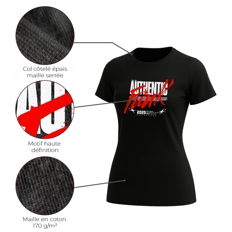 Nos t-shirts sont imprimés à Lyon avec une exigence professionnelle : couleurs nettes, détails précis et tenue durable. Chaque pièce est produite à la commande pour garantir un résultat propre et responsable.