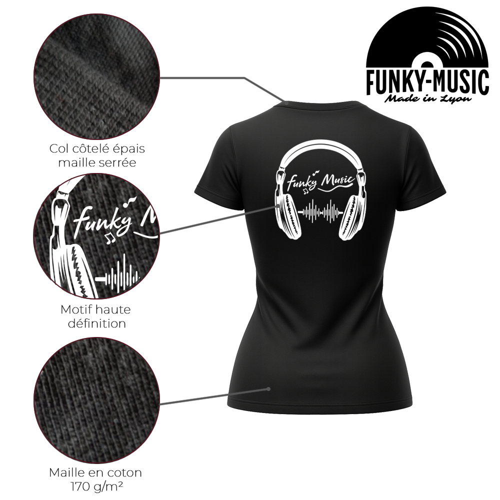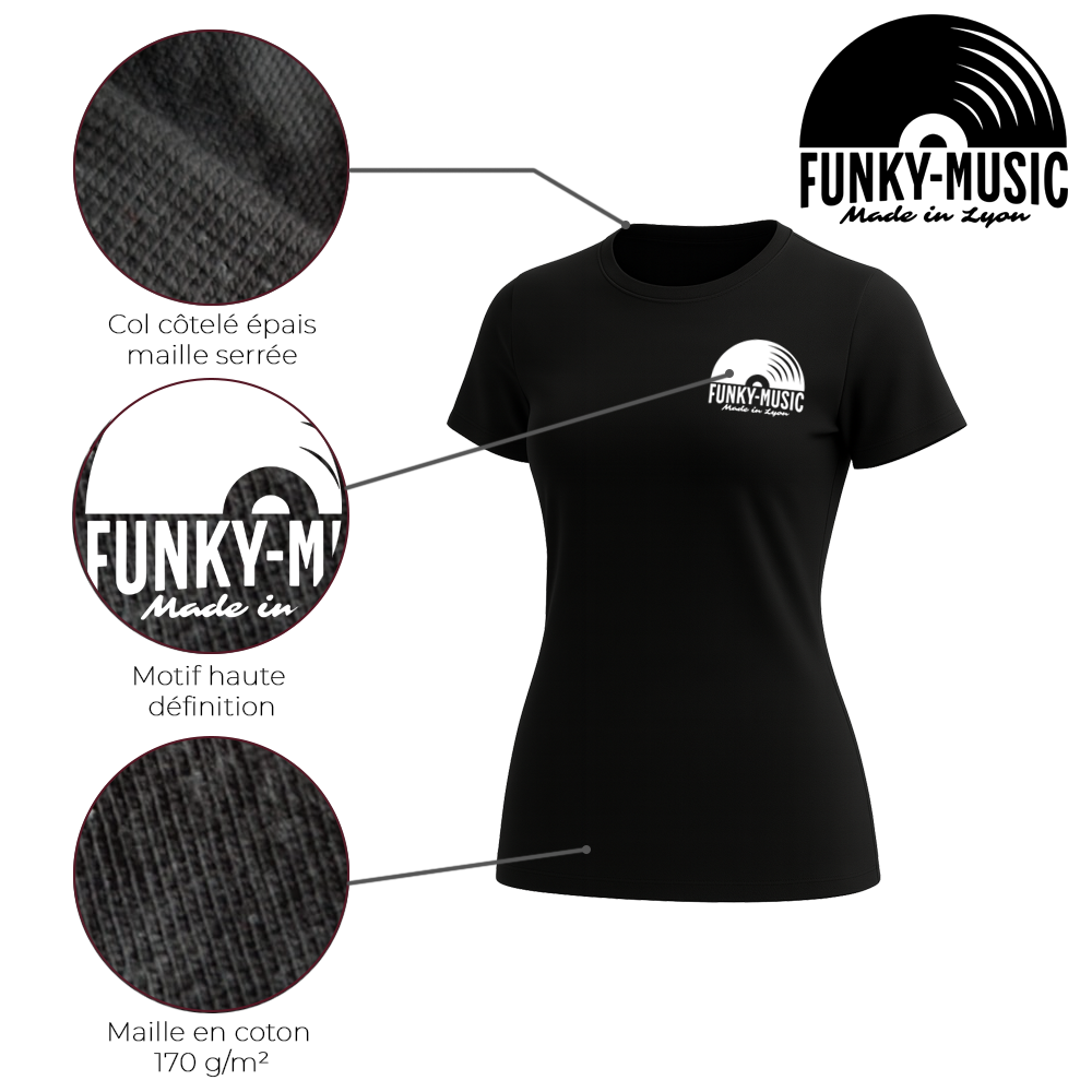 Ce T-shirt Funk pour femme “Made in Lyon” exprime une énergie locale forte, avec une coupe féminine confortable et un style groove affirmé.